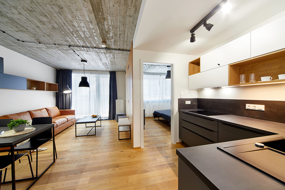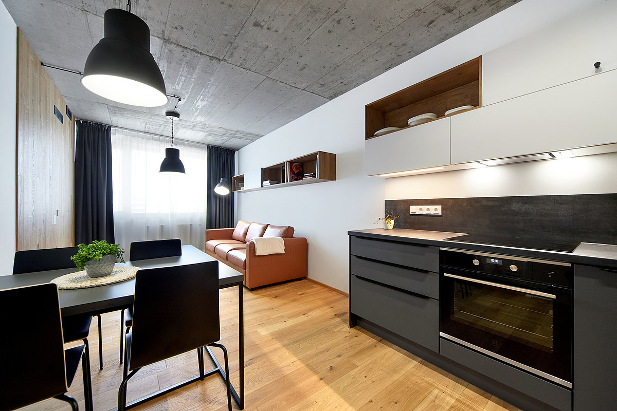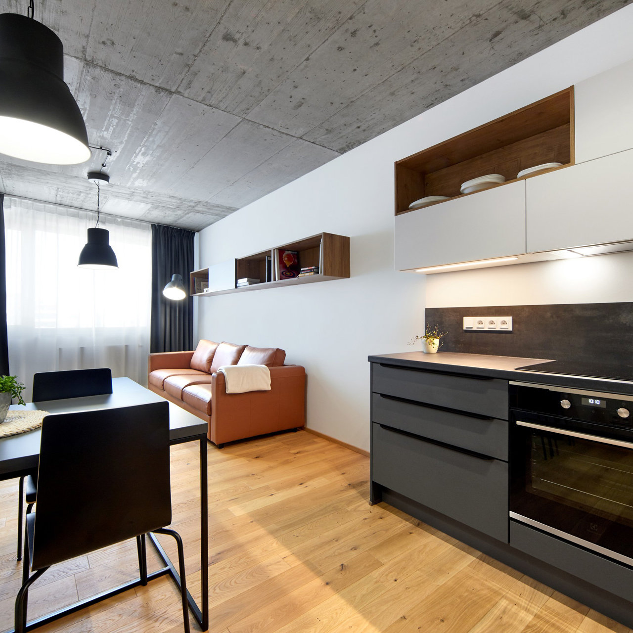 MIG POINT je novostavba s vysokým standardem bydlení. Nabízíme k pronájmu 24 luxusně zařízených bytů o dispozicích 1+kk s nikou a 2+kk. Všechny byty jsou vybaveny klimatizací.